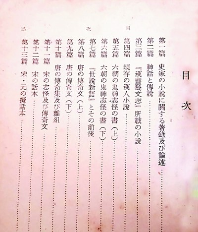 日本巖波書(shū)店出版的日文版《中國(guó)小說(shuō)史略》目錄,增田涉譯