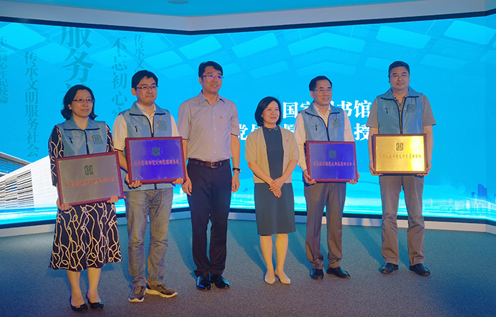 6月8日上午,國家圖書館新閱讀空間開放暨黨員志愿服務總隊成立活動在國家圖書館總館北區(qū)舉行?;顒蝇F(xiàn)場,國家圖書館黨委書記、副館長魏大威,國家圖書館副館長、黨委副書記陳櫻為4支黨員志愿服務分隊代表授牌。