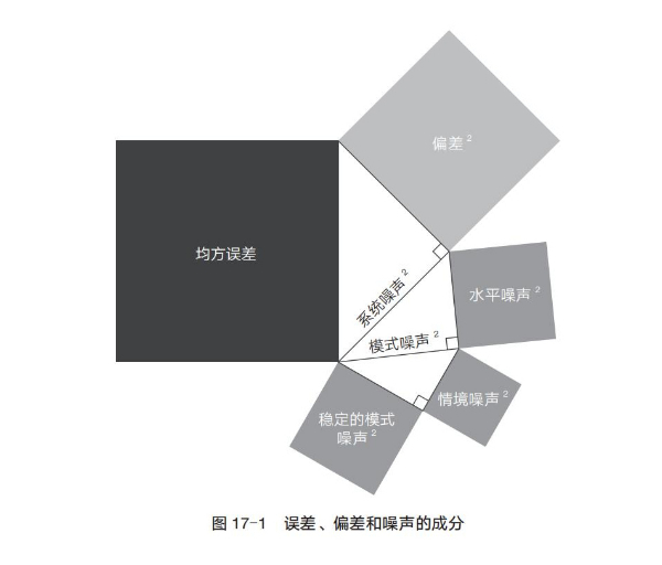 雖然我們很想謹(jǐn)慎一點(diǎn),盡量避免基于有限的案例做出過度性概括。然而,整合我們研究后發(fā)現(xiàn),穩(wěn)定的模式噪聲實(shí)際上比系統(tǒng)噪聲的其他成分都更為重要。由于我們很少在同一研究中全面地探究誤差的各個(gè)組成部分,因此需要進(jìn)行精確的分析才能得出這樣一個(gè)暫時(shí)性的結(jié)論。簡而言之,以下就是我們所知道的和所不知道的。(摘自第17章 噪聲源:偏差是引人注目的圖形,而噪聲是不受我們關(guān)注的背景)