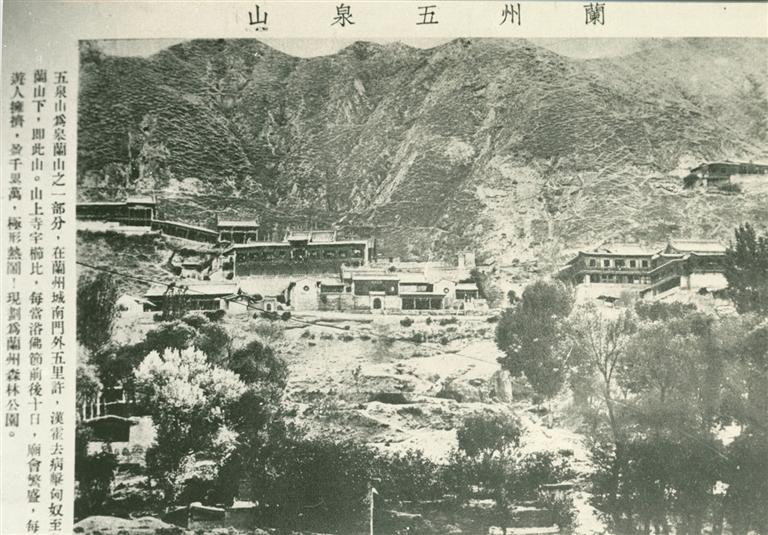 入民國(guó)以來(lái),隨著蘭州城內(nèi)人口的增加,拆除一些危舊建筑物,騰出空間,用以建房、拓路、設(shè)廠(chǎng)、建校。劉爾炘通過(guò)與官方及相關(guān)機(jī)構(gòu)溝通,將拆除的木料磚瓦,運(yùn)往五泉山充作建筑材料,重修五泉山的殿宇。也有將整體建筑移建五泉山的,例如將甘肅貢院的明遠(yuǎn)樓移五泉山建成明遠(yuǎn)樓;將蘭山書(shū)院的牌坊,移至五泉山,代做山門(mén),題額“五泉山”三大字,成為五泉山的標(biāo)志。