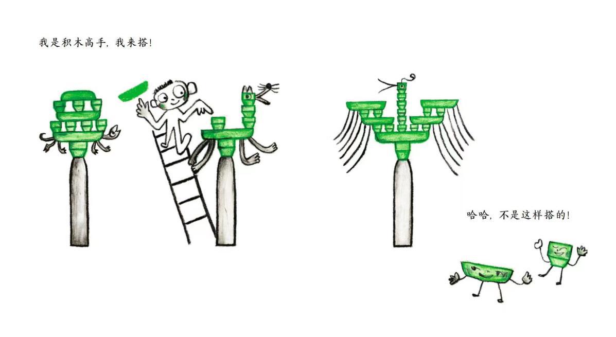 兒童蠟筆涂鴉式的拙趣畫風,配合生動鮮活、天真質樸的畫面,處處透著童真,更加符合孩子的審美趣味。透過簡單童趣的意象,孩子可以展開更多天馬行空的想象,給創(chuàng)新創(chuàng)造能力插上自由的翅膀。