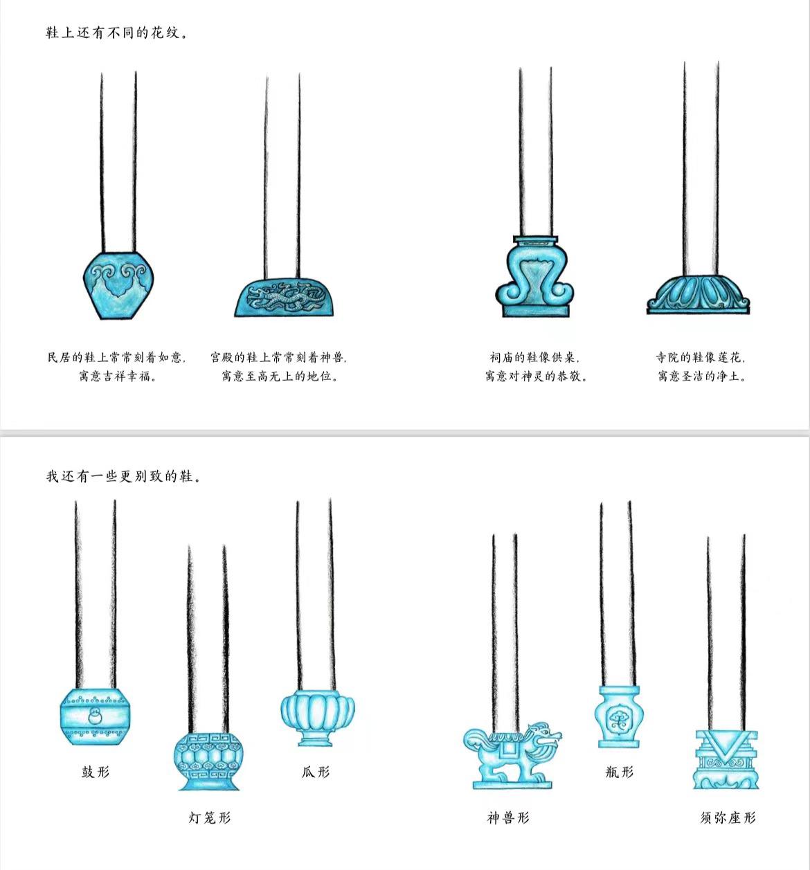 介紹柱礎時,講述中國房子也有很多漂亮的石頭鞋子: