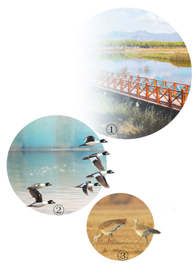 圖③為野鴨湖自然保護(hù)地里的大鴇。