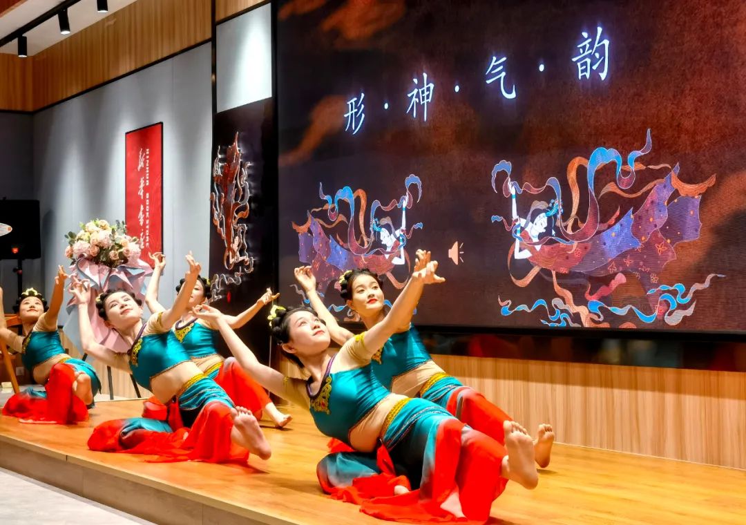 見面會現(xiàn)場,作者介紹了本書創(chuàng)作歷程,并通過“形、神、氣、韻”“抻、曲”“舞姿控制”“四臂觀音”“四人飛天”“胡旋與琵琶”等組合精彩紛呈的表演,使讀者更加直觀地了解本書的主要內(nèi)容和敦煌舞蹈的文化內(nèi)涵,感受敦煌舞蹈傳遞出的藝術(shù)價值、文化素養(yǎng)和無窮的魅力。