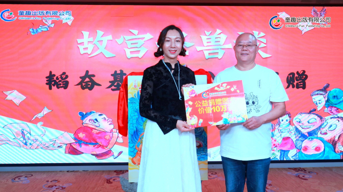 分享會(huì)上,童趣出版有限公司向韜奮基金會(huì)捐贈(zèng)了《故宮怪獸談》及世界名著等價(jià)值10萬碼洋的作品。插畫師譚諾專門為韜奮基金會(huì)創(chuàng)作了公益閱讀畫作,永久免費(fèi)授權(quán)韜奮基金會(huì)作為公益宣傳使用。