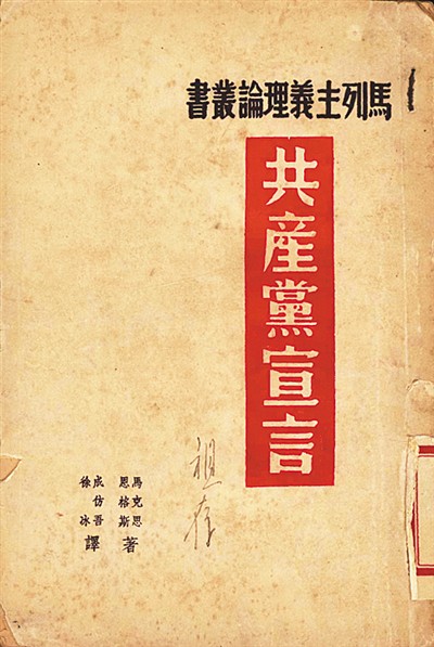 陜北公學(xué)首任校長成仿吾曾在法國和德國學(xué)習(xí)馬克思主義理論,并受中共駐共產(chǎn)國際代表蔡和森委托,翻譯《共產(chǎn)黨宣言》。盡管這部譯稿遺失,卻奠定了他五譯《共產(chǎn)黨宣言》的基礎(chǔ)。人大圖書館收藏了其中3個刊發(fā)本,包括初印版。其中的二譯本,是受中共中央宣傳部委托,在解放區(qū)公開組織翻譯的第一個漢語全譯本??箲?zhàn)期間,該譯本是黨員干部的必讀書籍,也是陜北公學(xué)馬列課程的必備教材。