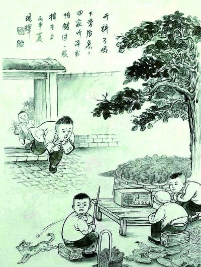 劉現(xiàn)輝的一套四冊繪畫作品《童年那些事兒》(花山文藝出版社出版),就是一次目光穿越時光阻隔,對童年和故鄉(xiāng)的深情佇望。經由長久而專注的凝視,一縷縷游絲般輕淡的鄉(xiāng)思,逐漸擴展匯聚成一種濃郁的故土深情,仿佛滿天云錦,在靈魂的天空閃現(xiàn)著動人的光華。
