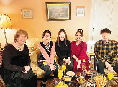 到愛(ài)爾蘭人家中做客、共度圣誕節(jié),對(duì)張靜瑄來(lái)說(shuō)是新鮮的體驗(yàn)。“那天晚上,我嘗到了許多圣誕節(jié)的特色美食,比如烤火雞、布丁等,我們幾名中國(guó)學(xué)生帶去了餃子,和老爺爺、老奶奶一同分享。席間,我們聊到春節(jié)和圣誕節(jié)的慶祝方式、對(duì)東西方家庭的意義等,這讓我切身體會(huì)到了不同國(guó)家的文化差異,也拓展了我的認(rèn)知,是我難忘的珍貴回憶。”周姝蕓