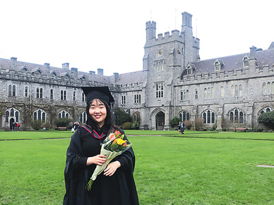 王藝晨在愛(ài)爾蘭科克大學(xué)碩士畢業(yè)時(shí)留影。