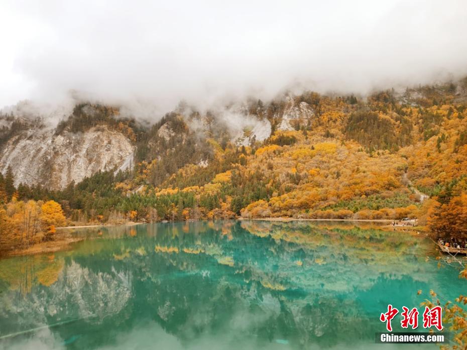 資料圖:深秋時(shí)節(jié)的九寨溝景區(qū)滿山的彩林與碧藍(lán)的海子交相輝映,宛如一個(gè)色彩繽紛的童話世界。曹惠君 攝
