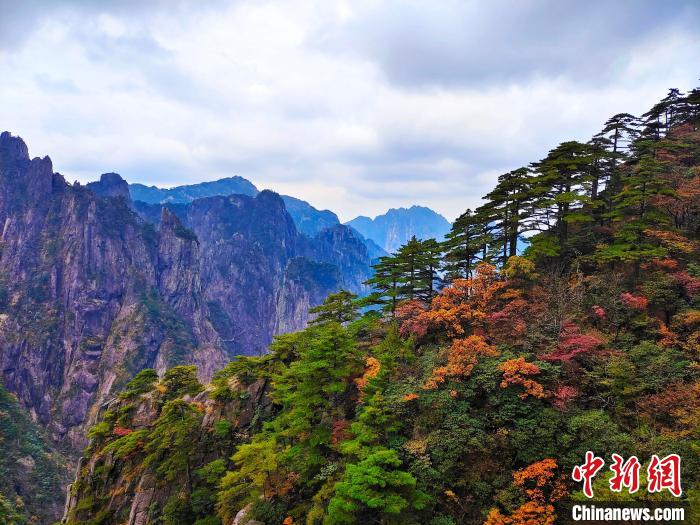資料圖:黃山風(fēng)景區(qū)樹(shù)木色彩分層,紅黃相間。陳偉 攝