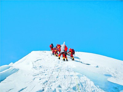 珠峰是地球的驕傲,人類探險(xiǎn)精神和探索精神的制高點(diǎn)與交匯處。登頂珠峰,是人體內(nèi)冒險(xiǎn)因子的永恒主題,是人類挑戰(zhàn)自身、挑戰(zhàn)極限、創(chuàng)新紀(jì)錄的不朽篇章。一次又一次登頂珠峰的背后,顯示人性中更多的征服欲和榮譽(yù)感,凸現(xiàn)難以用言語表達(dá)的從肉體到思想,甚至到生命的付出。