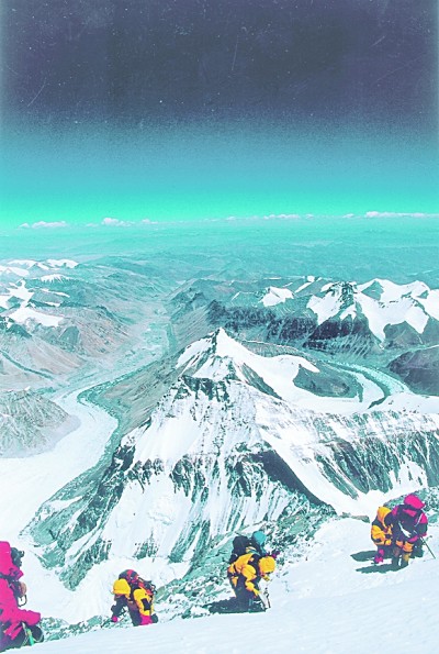 自1953年以來,人類以無與倫比的勇氣和日臻成熟的登山技巧,不斷地向珠穆朗瑪峰進(jìn)發(fā)。年復(fù)一年的登頂,在喜馬拉雅山脈蒼茫的峰嶺,寫下厚重的英雄史詩。1953年5月29日,新西蘭人埃德蒙·希拉里和向?qū)Уぴ?middot;諾爾蓋,從珠穆朗瑪峰南坡登頂,戴上人類歷史上第一次登頂珠峰的桂冠。1960年5月25日4點(diǎn)20分,中國登山隊(duì)隊(duì)員王富洲、屈銀華、貢布(藏族)經(jīng)過艱苦卓絕的攀登,終于首次從北坡登上地球最高的山峰珠穆朗瑪峰頂峰。中國人創(chuàng)造了世界登山史的新紀(jì)錄。經(jīng)過多年堅(jiān)忍不拔的努力,登頂珠穆朗瑪峰從夢想變成現(xiàn)實(shí)。從1953年至1999年,1169人次登頂珠峰。從2000年到2015年,5832人次登頂珠峰。到2015年,世界上已有7001人次登頂珠峰。