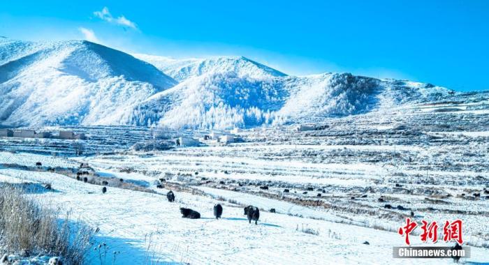 資料圖:初冬時節(jié),蘭州市榆中縣馬坡鄉(xiāng)迎來降雪,一場冬雪過后,村莊田野沐浴在雪景中,藍天白雪下,似童話世界。張學(xué)江 攝
