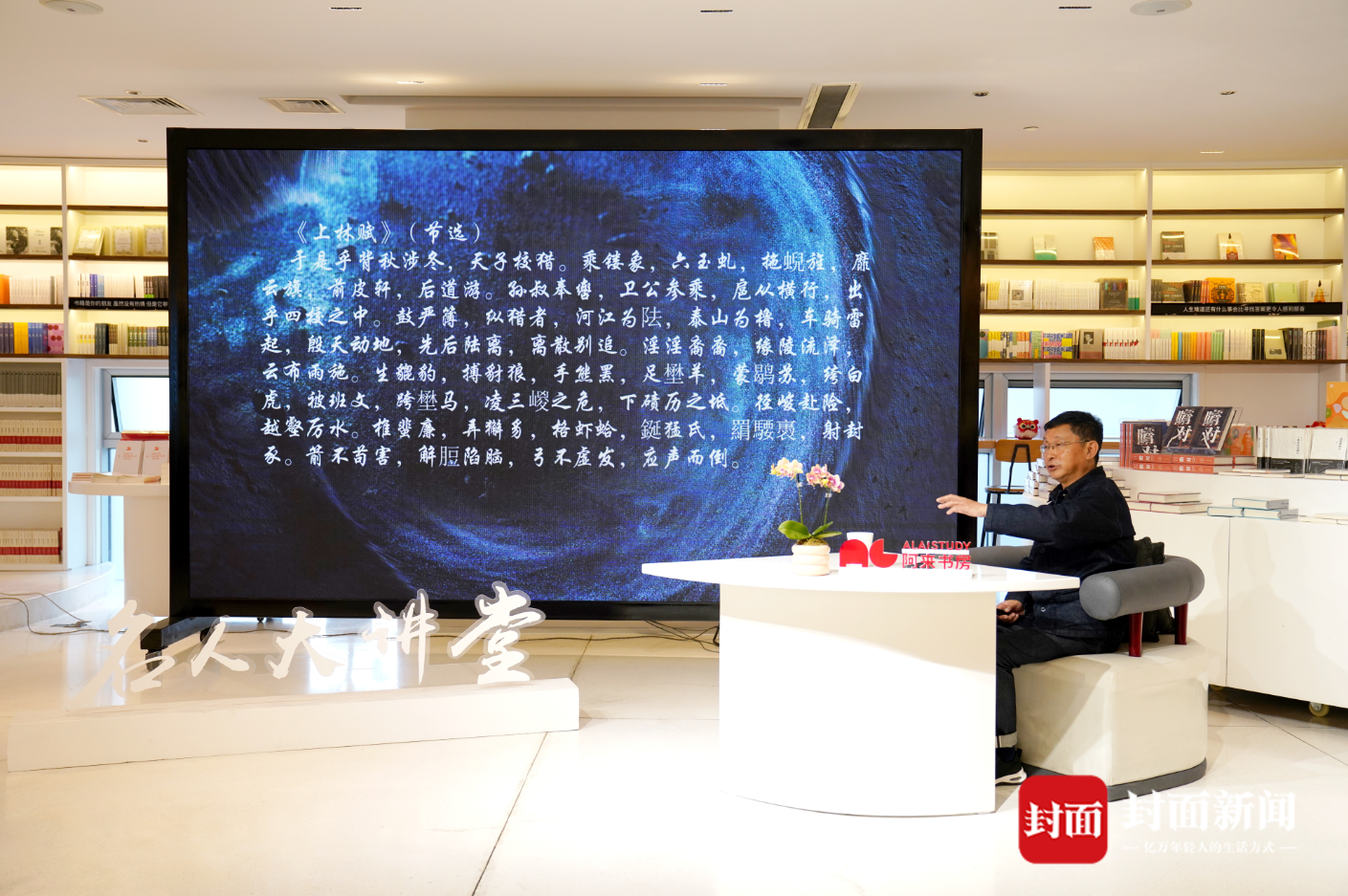 作為資深作家,阿來在講述司馬相如其人以及他所處的時代特點、文史知識同時,還重點從文學(xué)的角度,講解了相關(guān)文史記載文章,還特別以《子虛賦》《上林賦》等司馬相如的作品為例,逐字逐句進行分析“賦”這個文體的優(yōu)、缺點。比如在《上林賦》中,司馬相如寫楚國之子虛先生出使齊國,子虛向烏有先生講述隨齊王出獵,齊王問及楚國,子虛極力鋪排楚國之廣大豐饒,以至云夢不過是其后花園之小小一角。烏有不服,便以齊國之大海名山、異方殊類,傲視子虛。