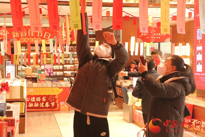 記者走進(jìn)節(jié)日的新華書店,五顏六色的元宵燈謎和大紅燈籠交相輝映,營(yíng)造出喜氣洋洋的節(jié)日氛圍。