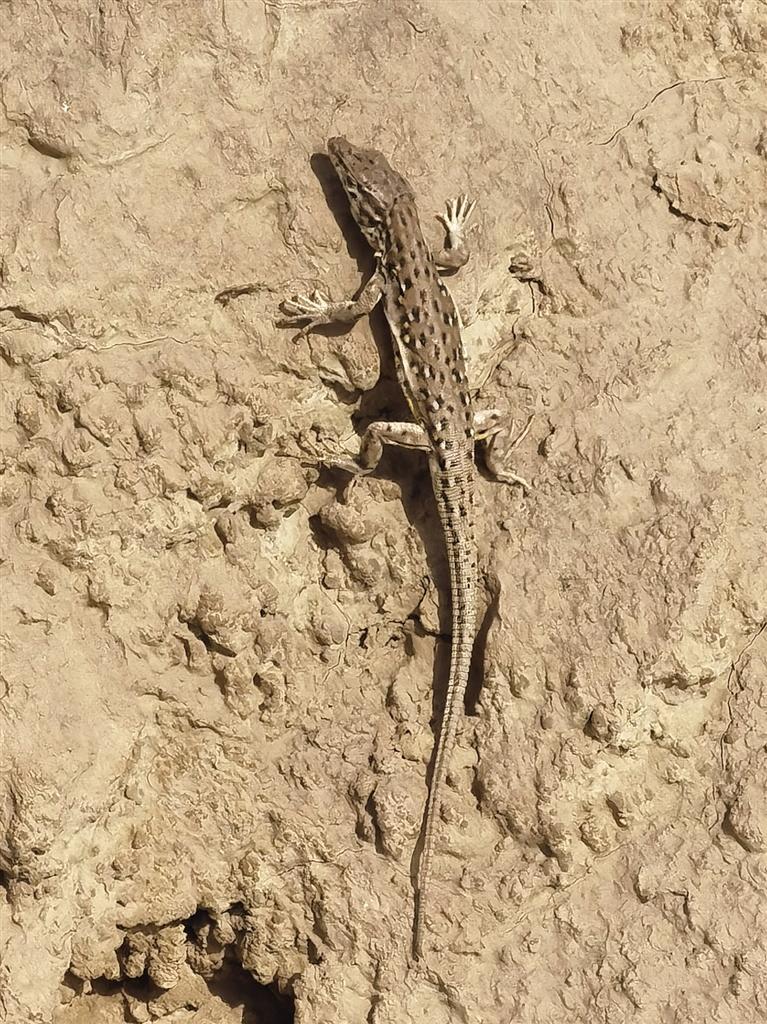 即將到達山頂,腳底下發(fā)現(xiàn)了亂竄的小蜥蜴。這是當(dāng)?shù)爻R姷囊环N小蜥蜴,就是壁虎,當(dāng)?shù)厝朔Q為蝎虎子、七寸子。土皮色,半厘米粗,5至10厘米長,跑的很快,有很強的自我保護意識。若被人或獵食者抓住尾巴,會主動斷掉尾巴逃跑,后在不到一個月的時間內(nèi),長出新尾巴。盡管有此本領(lǐng),但往往還是鷹和烏鴉等食肉飛禽及蛇的獵物。
