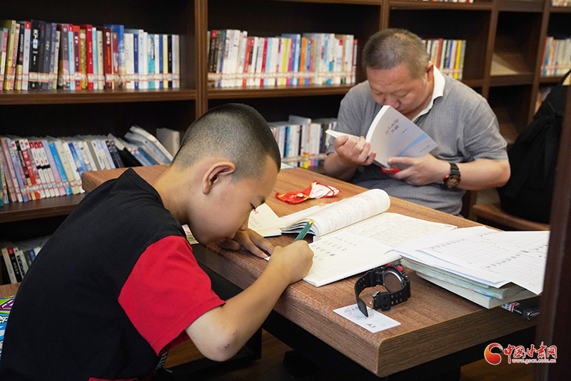 我們到達書屋時正是中午,盡管外面是灼灼烈日,里面卻清涼而寧靜。書屋里坐滿了人,有頭發(fā)花白的老先生,也有七八歲的稚童,四處都彌漫著書香和濃厚的讀書氛圍。