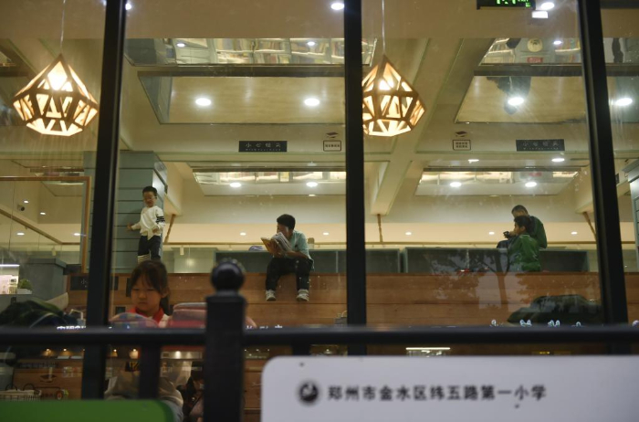 10月18日,一名小學生在鄭州市緯五路第一小學校園閱讀中心內閱讀。