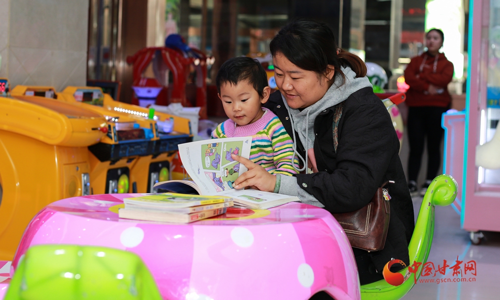 11月8日下午,平?jīng)鍪薪饾?rùn)國(guó)際購(gòu)物中心一樓大廳,女孩張美華和男朋友劉大川看到新設(shè)立不久的閱讀服務(wù)點(diǎn),于是隨手翻閱起書架上的書籍。這個(gè)服務(wù)點(diǎn),就是平?jīng)鍪嗅轻紖^(qū)圖書館在中心城區(qū)設(shè)立的5個(gè)便民閱讀服務(wù)點(diǎn)之一。