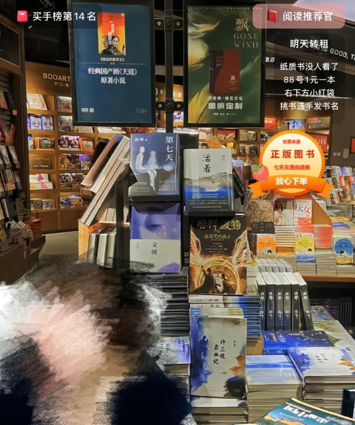 記者在采訪中,多名“盜版書受害者”表示,盜版商家常用的營(yíng)銷噱頭包括“圖書微瑕處理”“實(shí)體店倒閉,線上甩賣”“紙質(zhì)書沒人看了,全是新書扔了可惜”等。與此同時(shí),一些盜版書商利用消費(fèi)者對(duì)知名品牌的信任,常常在直播間加入“新華”“當(dāng)當(dāng)”“西西弗”等字樣,誤導(dǎo)性較強(qiáng)。盜版盜印書多瞄準(zhǔn)當(dāng)前暢銷書,通過(guò)直播帶貨等手段“快打快撤”,有新書發(fā)售僅一周,平臺(tái)就出現(xiàn)了盜版。