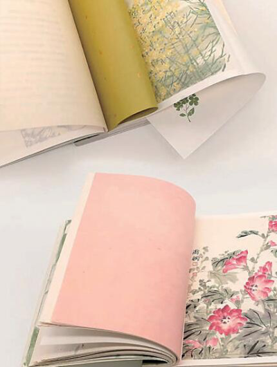 為了更好地呈現(xiàn)書(shū)籍裝幀效果,封面制作采用純色立體加印,不加任何裝飾。書(shū)中還配有由藝術(shù)家親手繪制的24幅珍藏版植物大圖,色彩溫潤(rùn)典雅,撕取后還可自行裝裱。該書(shū)采用了傳統(tǒng)三孔古線裝的裝訂方式,以純天然麻繩全手工裝訂、配頁(yè),共計(jì)58道工序。紙張切面三方全磨毛邊,呈現(xiàn)出自然肌理。章節(jié)頁(yè)所作的翻折處理,使得植物圖像在手工紙的覆蓋下若隱若現(xiàn),虛實(shí)相生,既提升了主題的表現(xiàn)力,也增添了閱讀的趣味。