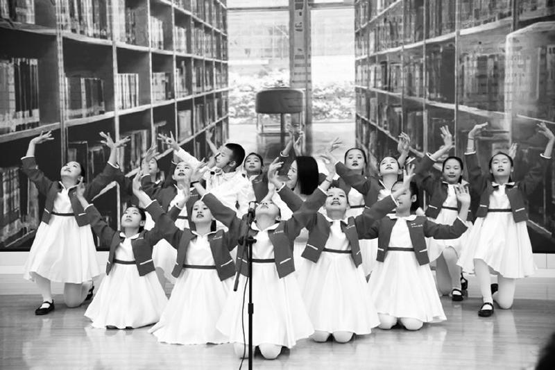 遼寧省開原市民主教育集團(tuán)“納蘭合唱團(tuán)”在發(fā)布會(huì)現(xiàn)場(chǎng)表演節(jié)目《老師》,以表達(dá)對(duì)老師的熱愛。 遼海出版社 供圖