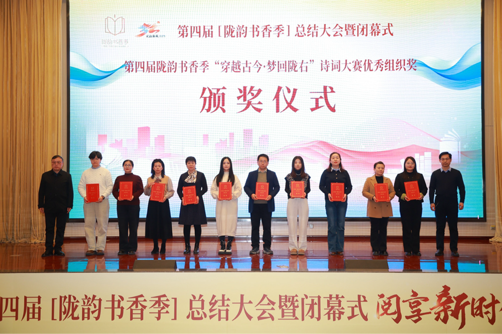 閉幕式上公布并表彰了“優(yōu)秀閱讀推廣活動(dòng)案例獎(jiǎng)”獲獎(jiǎng)人員、“‘穿越古今·夢(mèng)回隴右’詩(shī)詞大賽優(yōu)秀組織獎(jiǎng)”獲獎(jiǎng)人員、“‘閱·見(jiàn)西部’第一季——‘詩(shī)歌里的家鄉(xiāng)’(甘肅賽區(qū))最佳人氣獎(jiǎng)和優(yōu)秀獎(jiǎng)”獲獎(jiǎng)人員。