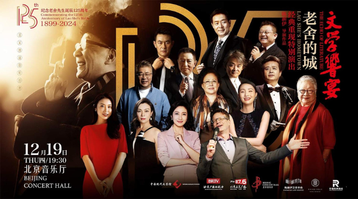 12月19日,一場獨特的文學(xué)“響”宴在北京音樂廳舉行。這是一期以老舍為文化主題的詩文雅集,一個關(guān)于歷史文化名城北京的年度盛典。在總導(dǎo)演陳薪伊的引領(lǐng)下,濮存昕、斯琴高娃、史可、陶虹、春妮、季冠霖、李立宏、任志宏、徐濤、大山、李洪濤、小柯、張樹榮等眾多著名藝術(shù)家,共同誦讀老舍先生的經(jīng)典名作,向這位偉大的人民藝術(shù)家致敬。