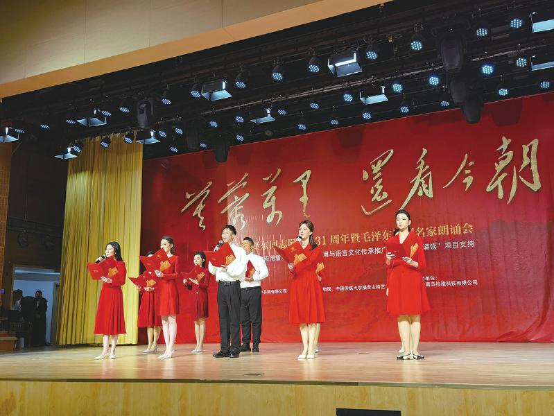 朗誦會上,中國傳媒大學學生誦讀毛澤東同志詞作《沁園春·長沙》。 本報記者 章紅雨 攝