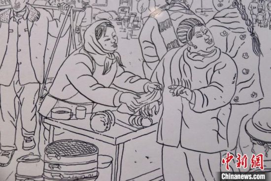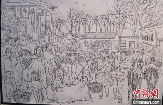 蘭州鋼筆畫(huà)愛(ài)好者手繪系列“臘月圖”,記錄“集市文化”,留住“年味”以感悟鄉(xiāng)愁?!¢Z姣 攝
