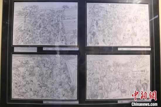 圖為蘭州鋼筆畫(huà)愛(ài)好者周新平手繪《隴西臘月圖》中人物。閆姣攝