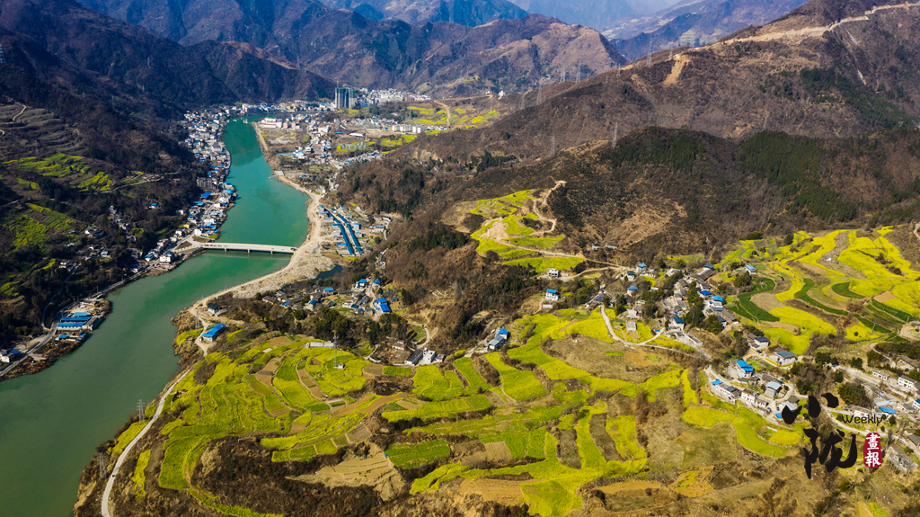 雨水過后,天氣漸漸轉(zhuǎn)暖,萬物漸漸復(fù)蘇,隴南文縣白龍江沿岸,漫山遍野層層疊疊的油菜花沐浴在陽光下,與藍天白云交相輝映,呈現(xiàn)出一片春意盎然的景象。