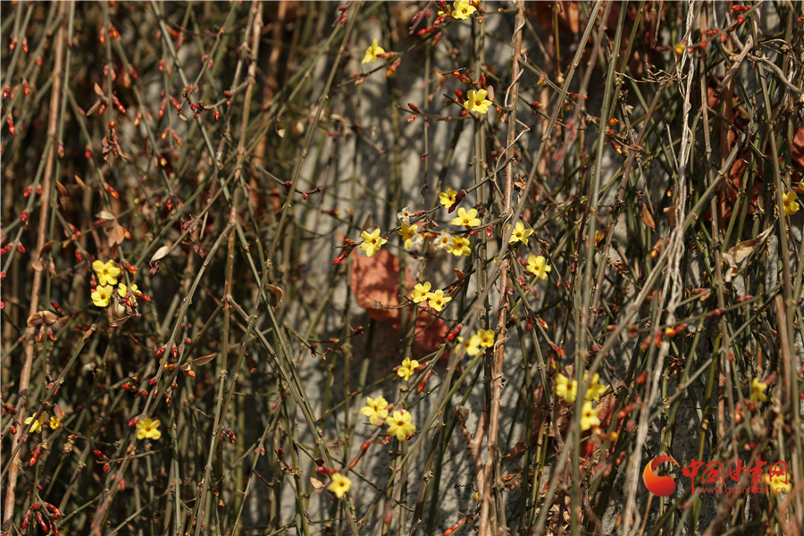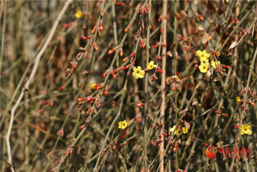 迎春花被譽為春天的使者,早春開放。