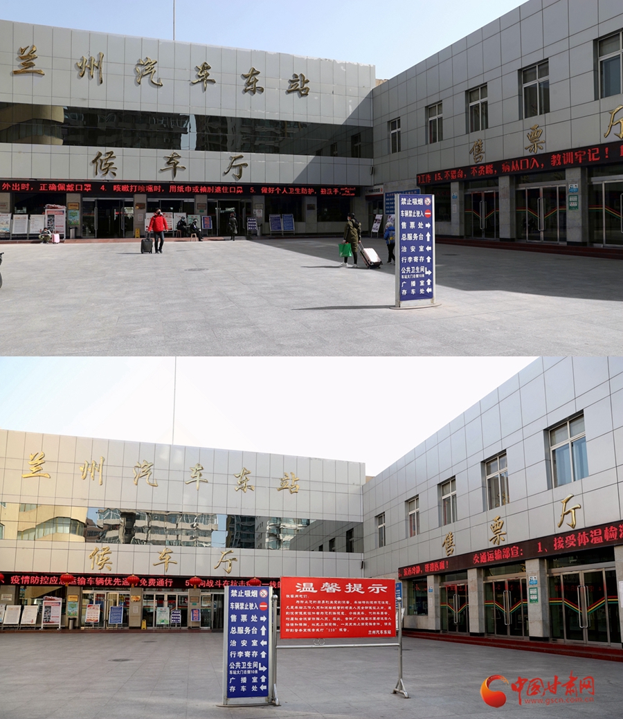 3月3日(圖上)與2月4日(圖下)拍攝的蘭州汽車東站