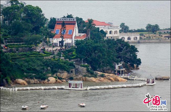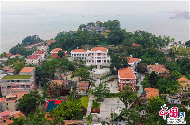 如果有這樣一座島嶼——遠處是一方寧靜的藍天,近處是一片幽深的綠樹,藍與綠之間,是逶迤而去的清水紅磚……極目遠眺,只見她濃淡相宜、遠近相安,仿佛一幅肅穆祥和的印象派油畫;細細聆聽,似乎還有一支悠揚的鋼琴曲,在伴隨海鷗與濤聲,不時從畫中飄來……