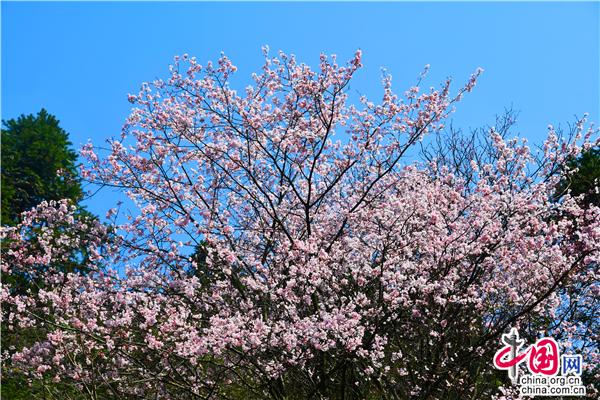 湖南新邵“長(zhǎng)壽村”萬畝櫻花怒放 宛若七彩水墨畫