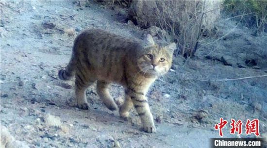 從保護區(qū)紅外相機監(jiān)測中,科研人員還首次發(fā)現(xiàn)了瀕危物種荒漠貓的照片和視頻。 敦煌西湖國家級自然保護區(qū)管理局供圖