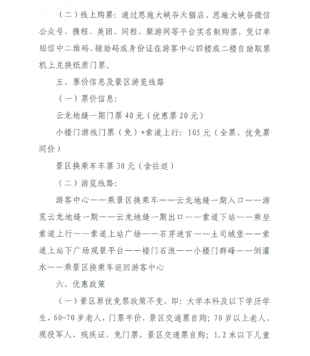 優(yōu)惠政策方面,景區(qū)原優(yōu)免票政策不變;與此同時,全國醫(yī)護(hù)人員、援鄂醫(yī)療隊(duì)員、天津援助恩施醫(yī)療隊(duì)員按湖北省文旅廳、恩施市文旅局相關(guān)優(yōu)惠政策(憑有效證件)免門票;天津市民憑有效證件享受門票半價。