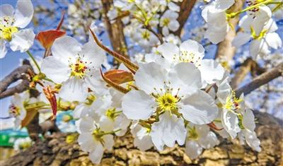 進(jìn)入古梨園,看見古梨樹雖然沒有綠葉的襯托,但粗壯遒勁的枝干上開出簇簇潔白的梨花,樹皮的皴皺變得模糊,整個古樹也變得清新雅麗、溫婉可人起來,再看著樹下白墻青瓦的村屋,會讓人一下子忘掉冬天,這就是人們?yōu)槭裁磹墼诖禾旃涔爬鎴@的原因吧。