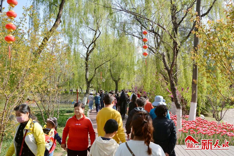 在經歷了一個漫長的嚴冬之后,馬跑泉公園的25萬余株郁金香和5萬余盆各類時令鮮花在麥積大地上郁郁蔥蔥的綻放著。