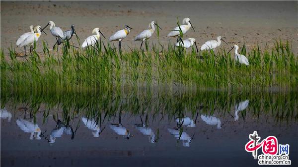 千山在翼下,萬里一春秋,文明有國界,遷徙無疆圖。追逐食物,追逐愛情,率性而為,這就是鳥的遷徙。每年的特定時節(jié),成千上萬的鳥沿著有規(guī)律的、相對固定的路線,定時地在繁殖區(qū)和越冬區(qū)之間進(jìn)行長距離的往返。目前,全球9條候鳥遷徙路線中有3條路過中國,而其中有兩條遷徙路線在寧夏重疊。因此,這里就多次發(fā)現(xiàn)珍稀鳥類,比如黑鸛、中華秋沙鴨、大鴇、白尾海雕等一級保護(hù)鳥類,白琵鷺、大天鵝等二級保護(hù)鳥類,而部分鳥類都曾在沙湖水域停留覓食。據(jù)有關(guān)部門考證,在寧夏沙湖水域發(fā)現(xiàn)的鳥類種類累計達(dá)17目44科198種。