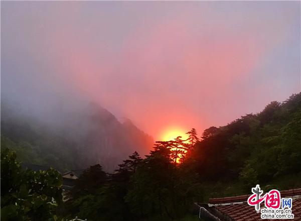 每逢五月,杜鵑花如約而至,用思慮了一冬的巧思把黃山的每一個角落都裝扮一新,給連綿不絕的山崗披上了五彩的織錦。經過了一冬的蟄伏和等待,杜鵑鉚足了勁兒,花團錦簇的熱情如“燃”起的火把,紅透了半邊天。黛青色的遠山縹緲幽遠,參天的松柏枝繁葉茂,淡而薄的云霧似有還無,杜鵑的姹紫嫣紅給黃山這幅意蘊悠長的水墨畫增添了幾分濃墨重彩,黃山更加靈動秀美了。最壯觀的當屬日出日落時分了,天邊的紅霞好似在花枝間流連,墜入花叢般和散落一地的杜鵑相互輝映、渾然一體。
