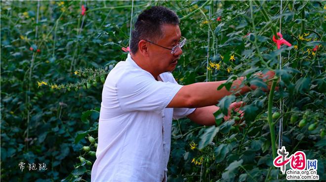 (圖:番茄小鎮(zhèn)負(fù)責(zé)人毛建偉在摘番茄)