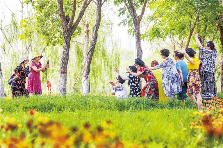 公園內馬鞭草種植量達20多萬株,還有金雞菊、天人菊、松果菊、金娃娃萱草、月季等宿根花卉和醉蝶、波斯菊、百日草等,花卉種植面積7萬多平方米,占公園總面積的60%以上。絢麗多彩的大色塊的花景組合配以公園獨特的運動主題,呈現(xiàn)出動靜有致的濱河“花海”,深受廣大市民的喜愛,成為黃河風情線新晉網紅“打卡”點。