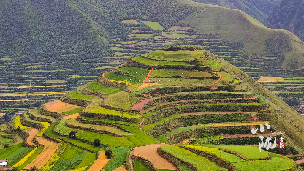 行走在冶力關(guān),目之所及皆是美景,在半山腰上向遠(yuǎn)處眺望,只見遠(yuǎn)山層巒疊翠,云蒸霞蔚,梯田綠黃交錯(cuò),如詩(shī)如畫。