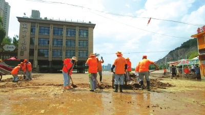 保潔人員清理淤泥