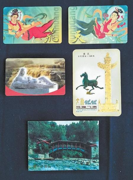 甘肅的自然風(fēng)光優(yōu)美,人文歷史悠久,經(jīng)過(guò)不斷挖掘,精心保護(hù),成為人們旅游、觀光的理想之地。北京中鈔信用卡廠于2001年制作的“飛”字片、“天”字片“飛天”對(duì)卡年歷片,中國(guó)工商銀行甘肅分行于2000年設(shè)計(jì)了《黃河母親》年歷片,中國(guó)農(nóng)業(yè)銀行甘肅分行于1987年設(shè)計(jì)的《興隆山握橋風(fēng)光》年歷片,中國(guó)遠(yuǎn)洋運(yùn)輸公司上海分公司于1978年制作的《馬踏飛鳥(niǎo)》年歷片,都為甘肅旅游風(fēng)光作了宣傳。