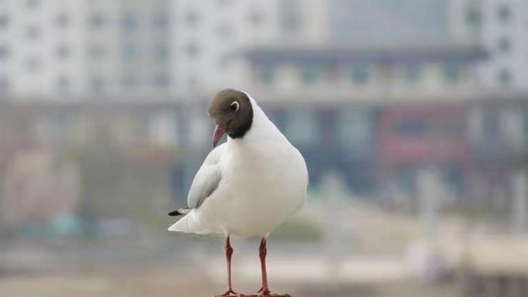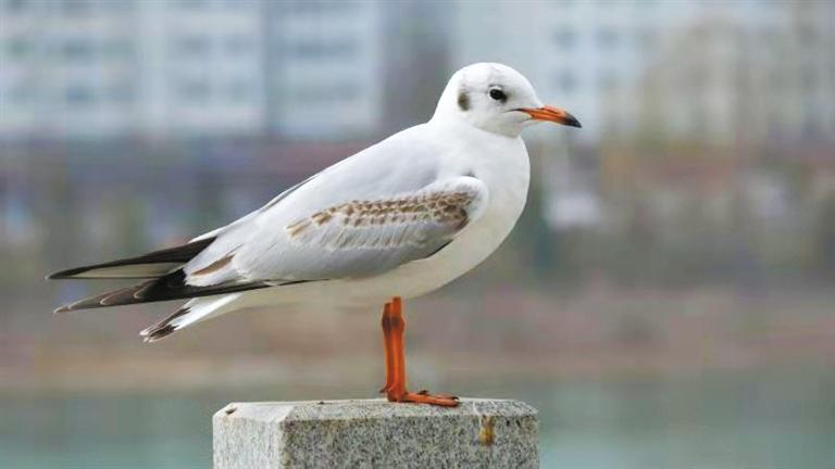 紅嘴鷗,俗稱水鴿子,體形和毛色都與鴿子相似,嘴和腳皆呈紅色,身體大部分的羽毛是白色,尾羽黑色。紅嘴鷗喜集群,在世界的許多沿海港口、湖泊都可見到,多數(shù)在中國(guó)東部及北緯32度以南湖泊、河流及沿海地帶越冬。