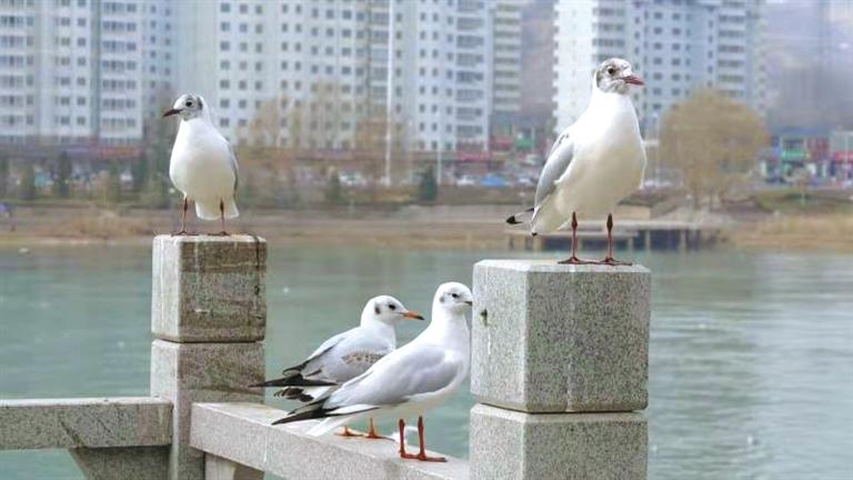 近年來,隨著黃河生態(tài)環(huán)境不斷改善及人們愛鳥、護(hù)鳥的生態(tài)意識(shí)不斷增強(qiáng),越來越多的野生鳥類前往劉家峽越冬。紅嘴鷗作為一種對(duì)生態(tài)環(huán)境和河流水質(zhì)要求較高的鳥類,每年與永靖相約,沿河居民來到河邊觀鳥喂鳥,紅嘴鷗等鳥類或駐足歇息,或追逐戲水,或悠閑覓食,或盤旋飛翔……上演著人鷗和諧相處的生態(tài)美景,各地的攝影愛好者也紛紛前去拍攝采風(fēng)。